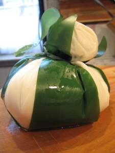 Much to my chagrin I soon learned that burrata is not so easy to come by, and is darn expensive once found. The trouble with this tasty cheese is that it is highly perishable, lasting only about one week after it has been made, a process which entails wrapping a piece of fresh mozzarella around a mixture of mozzarella curds and fresh cream. The result is a very delicate and delicious cheese which practically melts in your mouth.