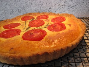 For anyone who is interested in a little taste of France, Dorie’s original recipe was written up in Bon Appetit. In her book Dorie points out that the classic version of the tart is made with tomatoes, and since we are now in the middle of summer, that is how I chose to make it. In doing so I realized that the tomato version is probably also much quicker since there is less chopping to be done and no need to pre-cook the veggies.