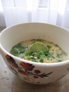 Dorie’s Spicy Vietnamese Chicken Noodle Soup looks intimidating at first due to the long list of ingredients. But I found that everything was easily purchased from the asian section of my local supermarket, and after that the soup was really quite easy to pull together. And the flavor, OH the flavor, while not really spicy (I made a note to add more chiles next time) was so deep and rich that I found myself going back to the pot again and again for just one small bite more. Contrary to Dorie’s instructions, I also cooked the noodles directly in the broth so that they soaked up some of the herby broth. So tasty!