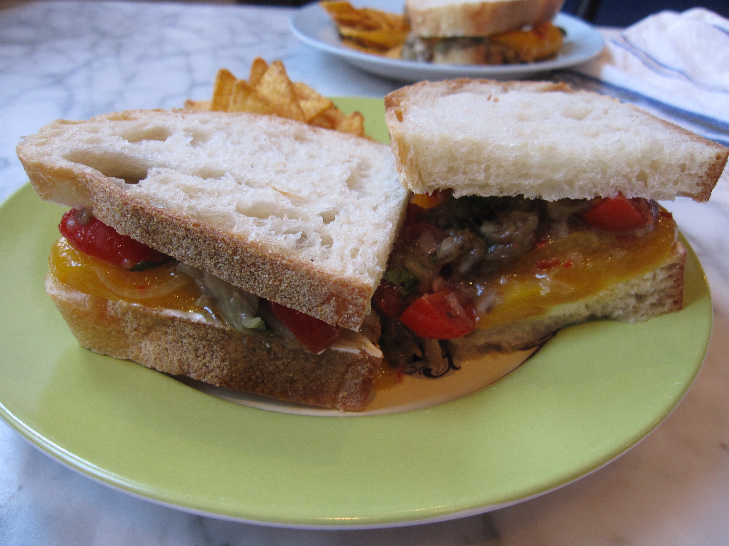 • Wish I could take credit but it was Dorie’s idea all the way… actually, I think the goat cheese was my idea, but otherwise she gets full credit. In any case, the sandwiches made a very tasty lunch.
