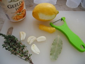 And what about Dorie’s potatoes? These are essentially boiled potatoes which (to borrow a phrase from Mr. Lagasse) have been kicked up a notch by boiling them in broth and a fragrant mix of herbs. I found the potatoes to be quite good, more flavorful than your average boiled potatoes, but still not strong enough to stand on their own. My standard treatment for boiled potatoes is to throw a little butter and chopped parsley into the pot and then bash them around a bit and I think that would have worked well with these. But since I already had a sauce from my chicken recipe I ended up throwing that over my potatoes and enjoying every bite. I can definitely see making this exact meal again.