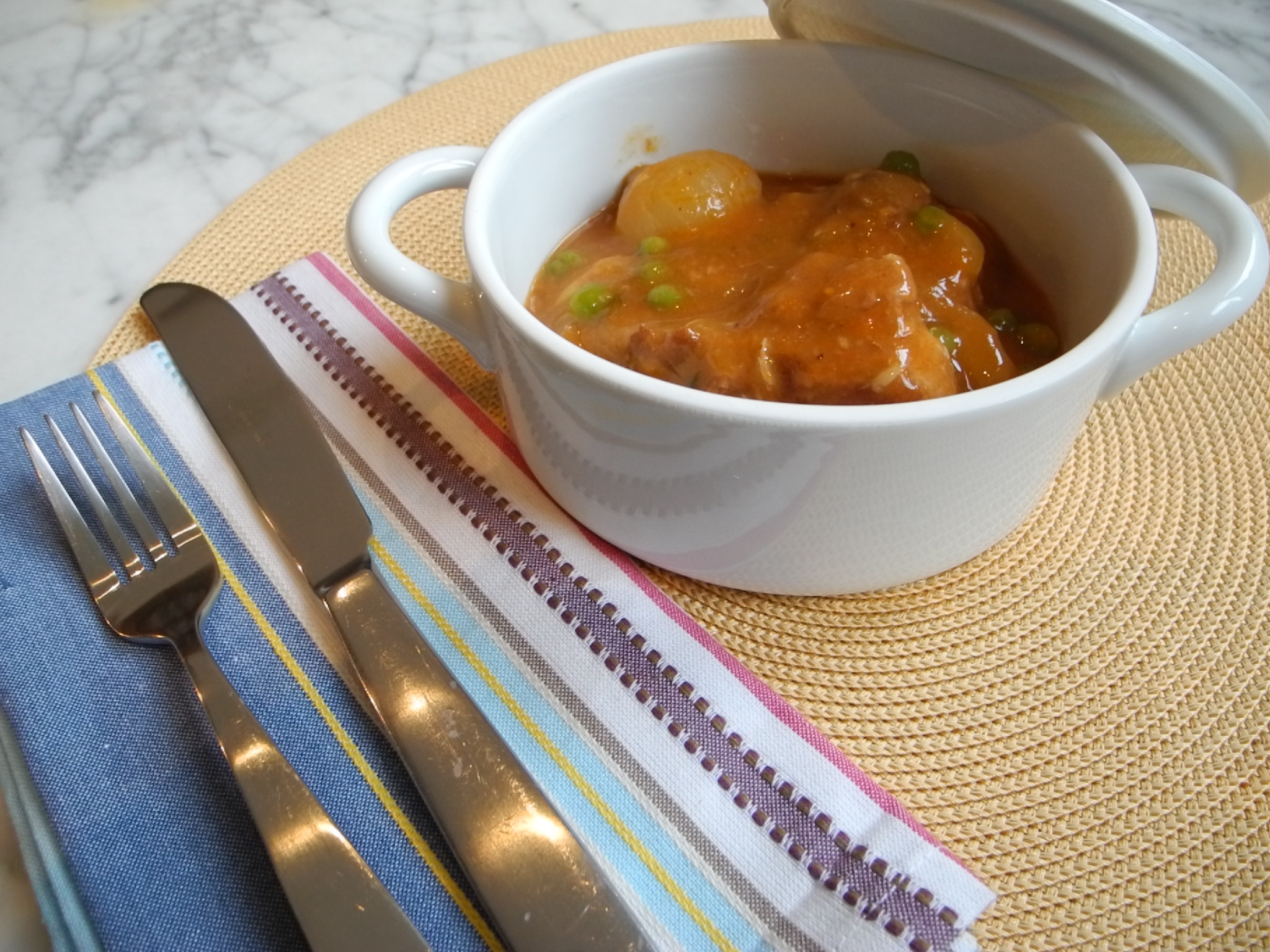 Yes – it seemed like winter stew to me…my daughter asked where in France it was cool enough for this recipe at this time of year! It is certainly too hot for it in Central Texas. Like your covered bowl!
