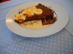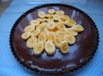 Quite a few of my fellow Doristas were really looking forward to this one. I, strangely, was not. No idea why, but chocolate and banana has never been a particularly winning combination for me. Now chocolate and raspberry, or chocolate and strawberry, or chocolate and coffee… yum! But somehow chocolate and banana has never topped my list. However, Dorie has an absolutely gorgeous photo of this tarte in her book, which makes it impossibly not to be at least mildly curious about this recipe, which is chocolate crust filled with caramelized bananas, chocolate ganache and then topped with fresh bananas. Doesn’t sound at all bad does it?