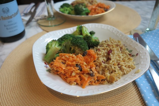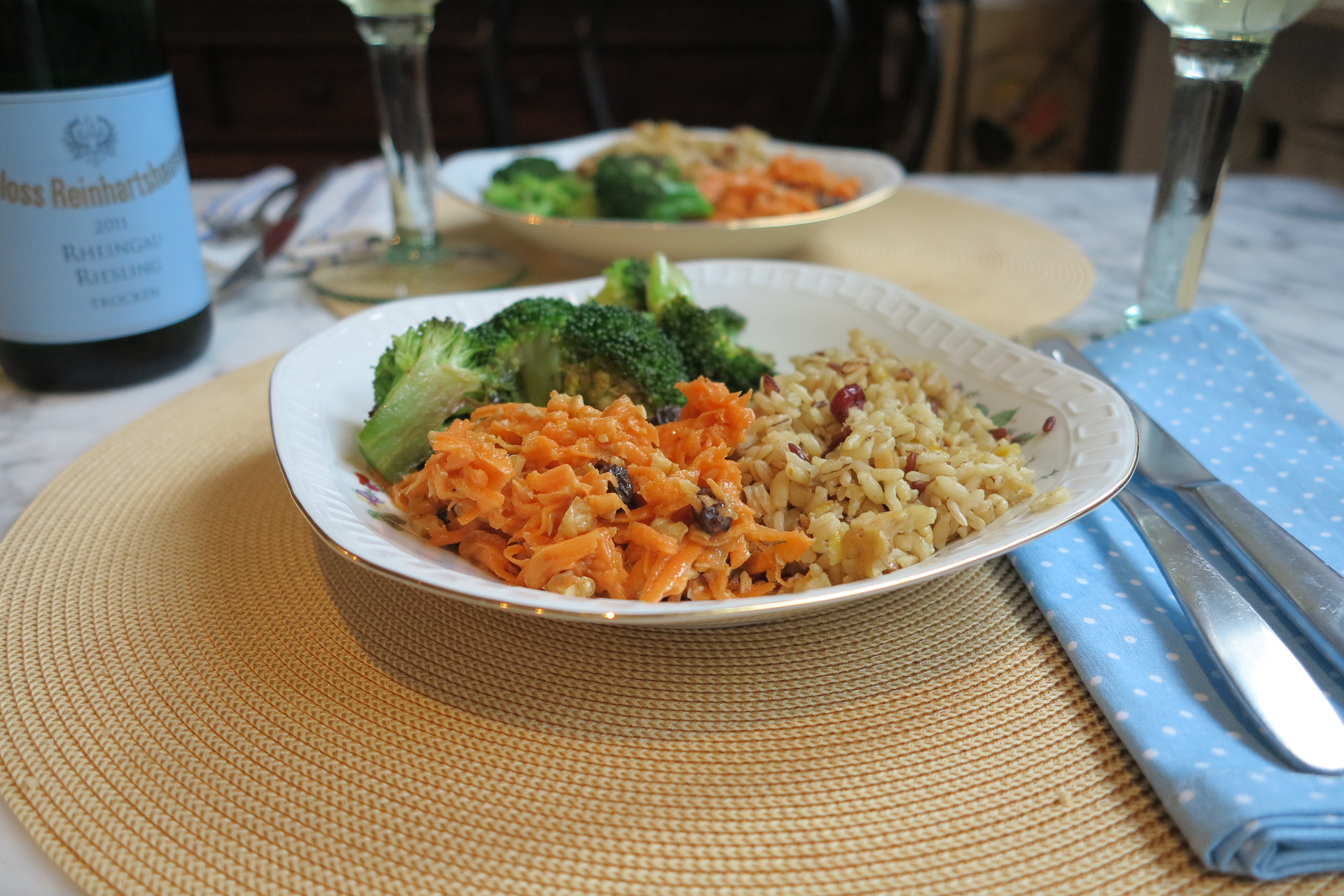 First let me say that this is not the first time I have made this salad. In fact, it may very well have been the first non-baked Dorie recipe I ever made, after stumbling across it on her blog years ago. Second, let me say to all of my fellow cooks who are planning to make this salad next week, keep an eye on the dressing! I have often wondered if there was a typo in this recipe because half a cup of oil seems to be quite heavy handed for 4 servings and I find that there is a bit too much dressing here for the amount of carrots. However, if you simply dress the salad with whatever amount looks right to you (the leftover dressing is very good on salads or veggies so I usually just make up the full batch) then this is a very quick and easy side to add to your repertoire. It’s probably not the recipe which you will pull out when you are cooking to impress, but it is absolutely one which I pull out on a regular basis to feed the ones I love with tasty and nutritious fare.