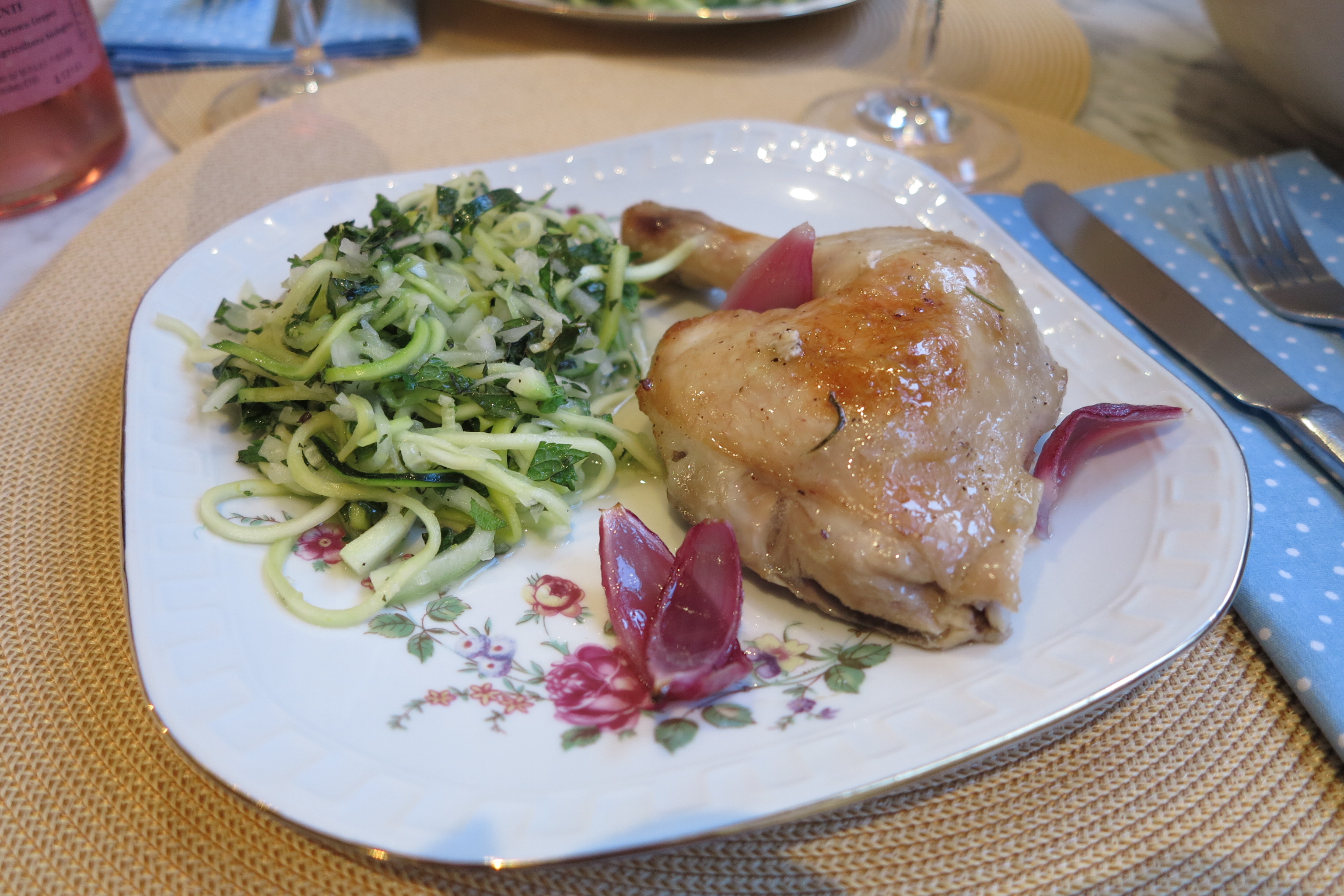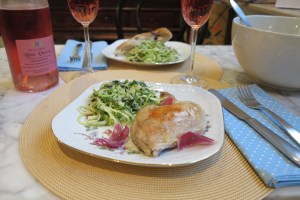 This means that I will have to catch up with my fellow Doristas at the end of September. In the meantime, I managed to get this week’s recipe, Minted Zucchini Tagliatelle with Cucumbers and Lemon, made last weekend, but I think that it is one which I am going to have to try again if I ever manage to get my hands on some good pistachio oil. I just couldn’t find this seemingly key ingredient anywhere and had to substitute olive oil instead. I really like the idea of this recipe and am always excited to find new ideas for veggie sides. Especially zucchini, I think I have 2 or 3 standard recipes for zucchini and never seem to make anything different. With the olive oil it was good, but I suspect that it could be better.