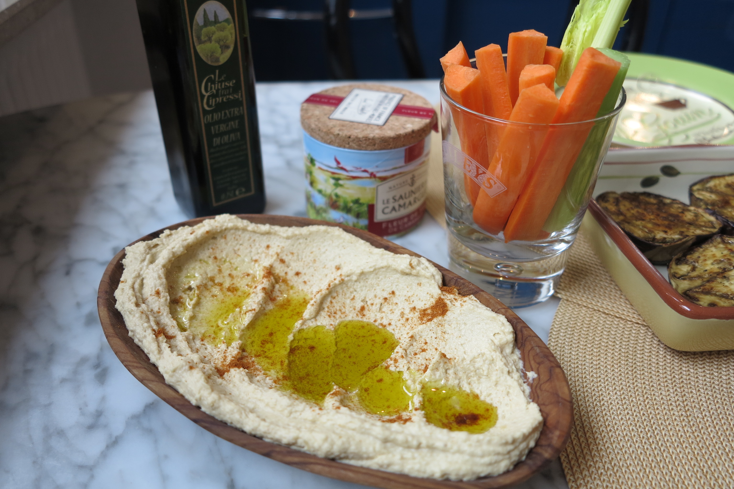 Hummus is something which I buy somewhat regularly and really enjoy. It’s a tasty and easy, all-purpose kind of food to have around, either as a dip or spread for sandwiches. But somehow, not once in many years did it ever occur to me to make it myself. And now I am left to wonder, why the heck not?! This week Dorie showed me how incredibly easy hummus is to make at home. Throw all of the ingredients into a food processor and hit the On button. Done! Seriously easy. Not just that, but it turns out that I usually have all of the necessary ingredients in my cupboard. I will absolutely be making this again. We served it sprinkled with a bit of cayenne and olive oil, and with fresh veggies for dipping.