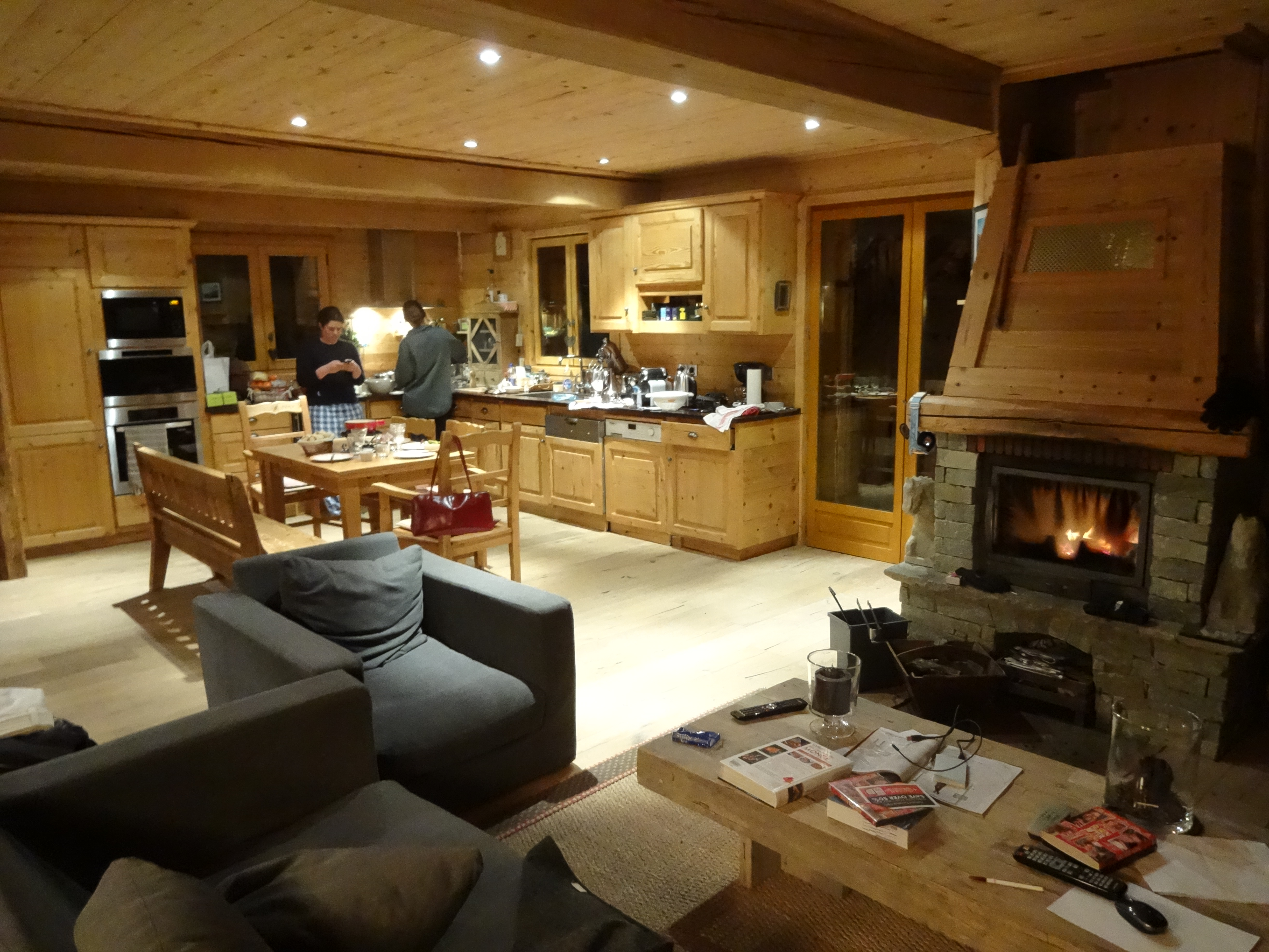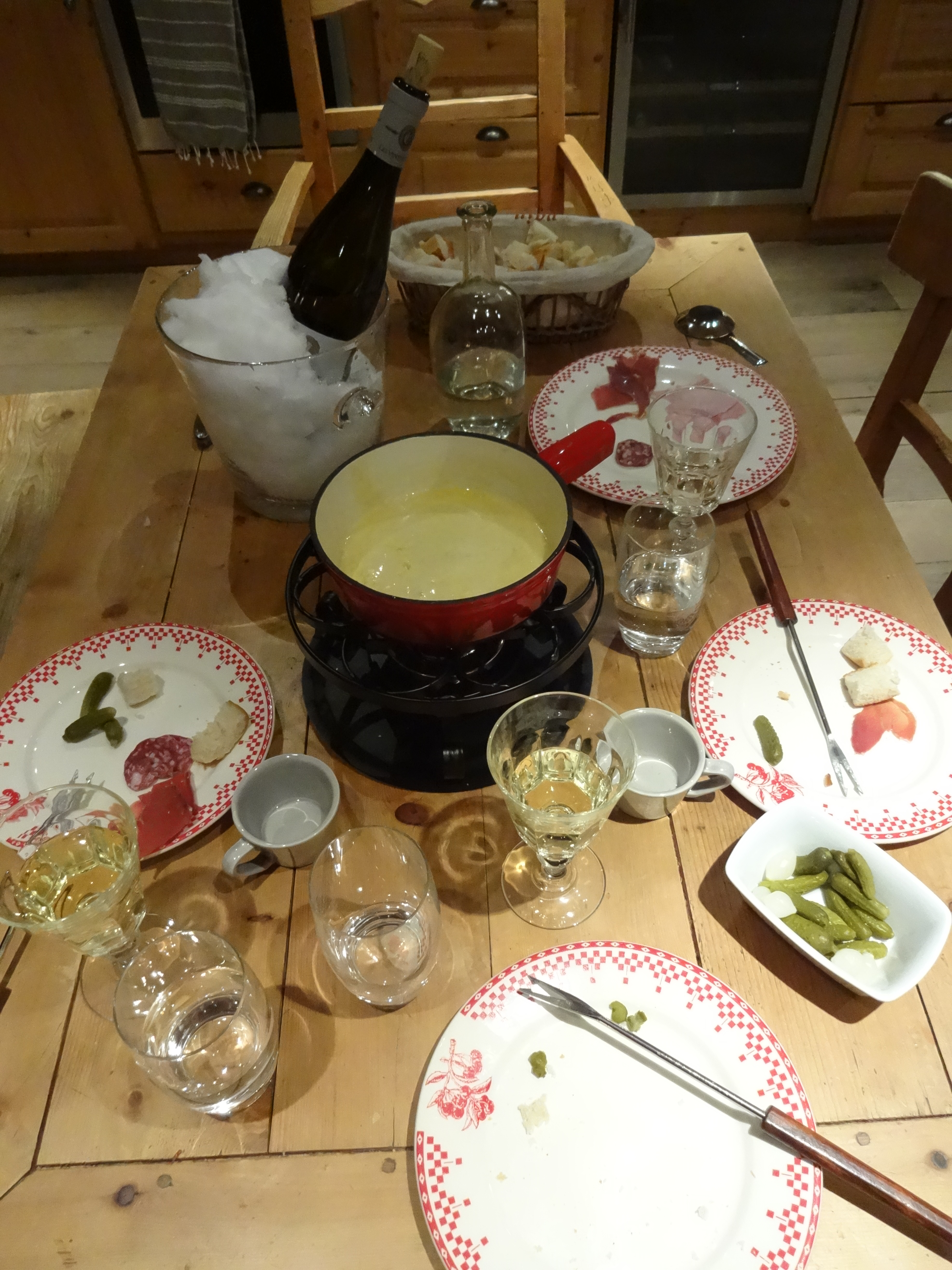 Luckily for me, I can tolerate pretty much anything. Unluckily for me, the weather was not ideal for skiing:-( Which meant that we had quite a bit of free time to kill. The television in our rental was all in French. The internet connection got progressively worse as the week wore on. But take a look at our kitchen! It was easily twice as large and much better equipped than my little kitchen here in Frankfurt. So, what did we do? We learned to make fondu.