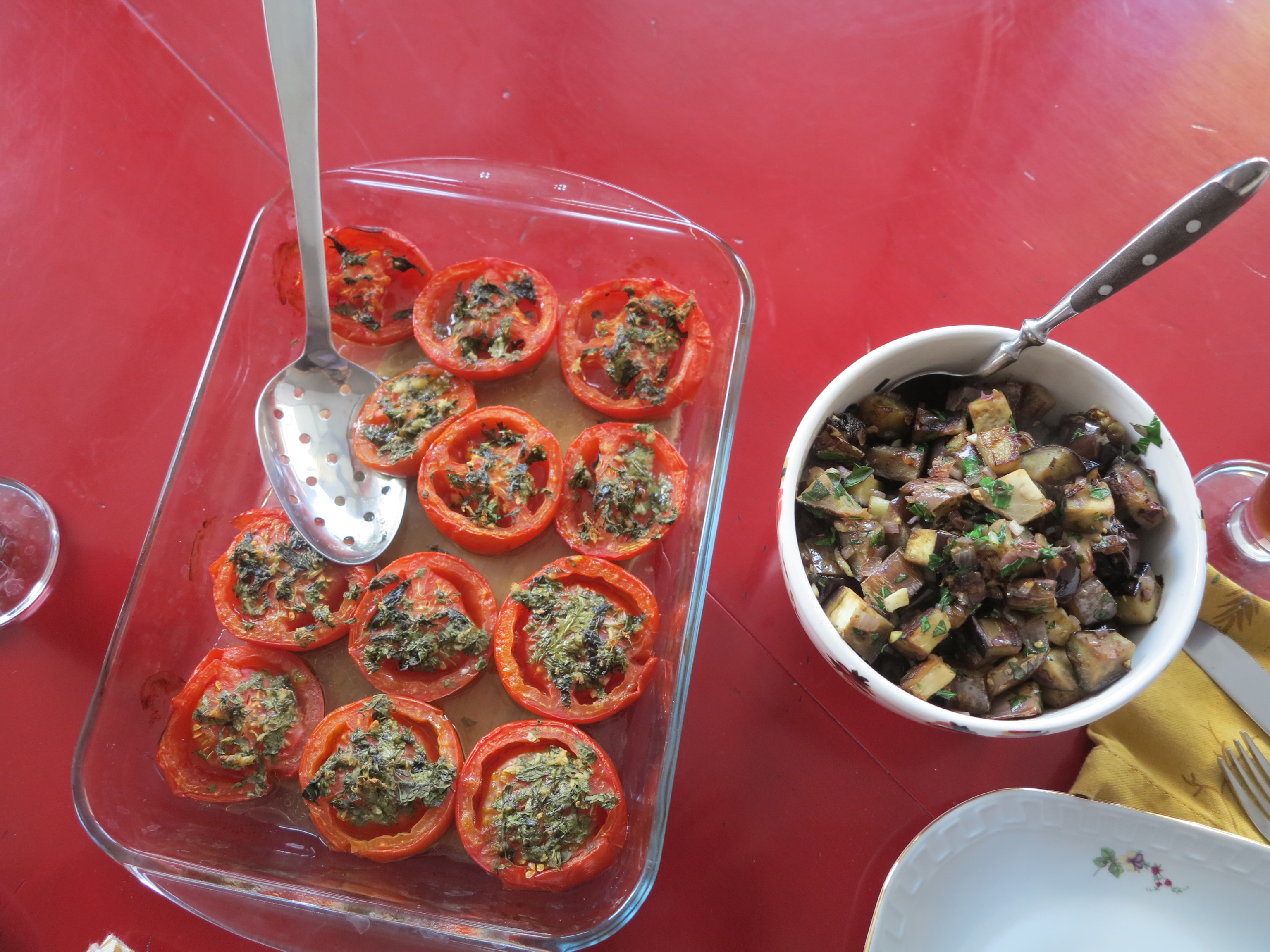 Rose, yes, you are right, there is nothing better than coming home after a long day at work and finding the most delicious left-overs in your fridge. The idea of mixing the remaining oven-roasted tomatoes and the aubergine to make a pasta sauce sounds wonderful to me!