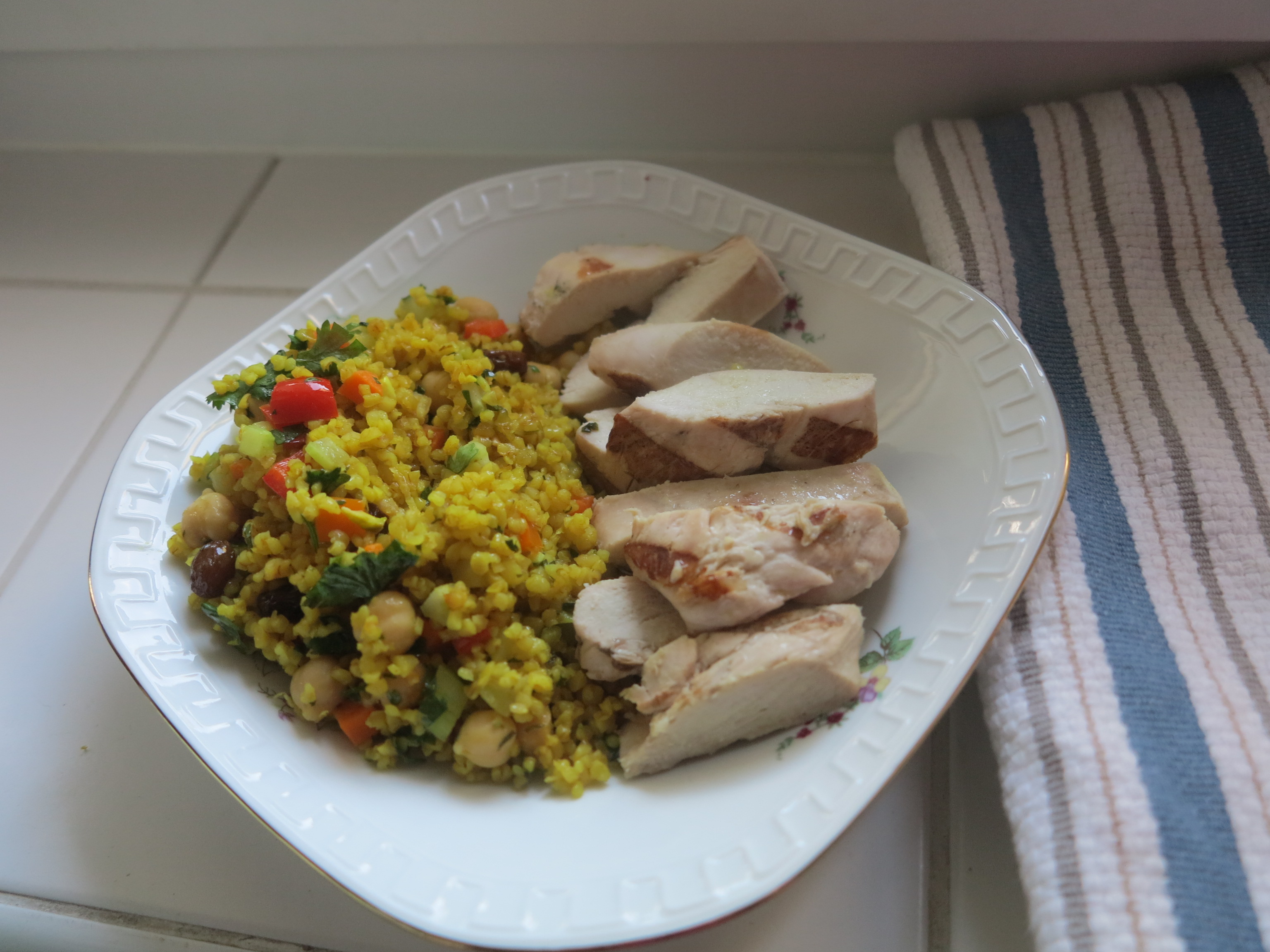 Whether it was couscous or bulgar, this salad lasted and lasted and lasted. I agree with Liz – marinate. The problem is you don’t want chicken to be raw or a little bloody inside so the tendency is to overcook it. Been there. Done that. Your peppers look lovely. Weren’t they good? I didn’t have enough of them although I made the full recipe. Wish I could have traded in half the couscous salad (which I liked) for more peppers (which I loved).