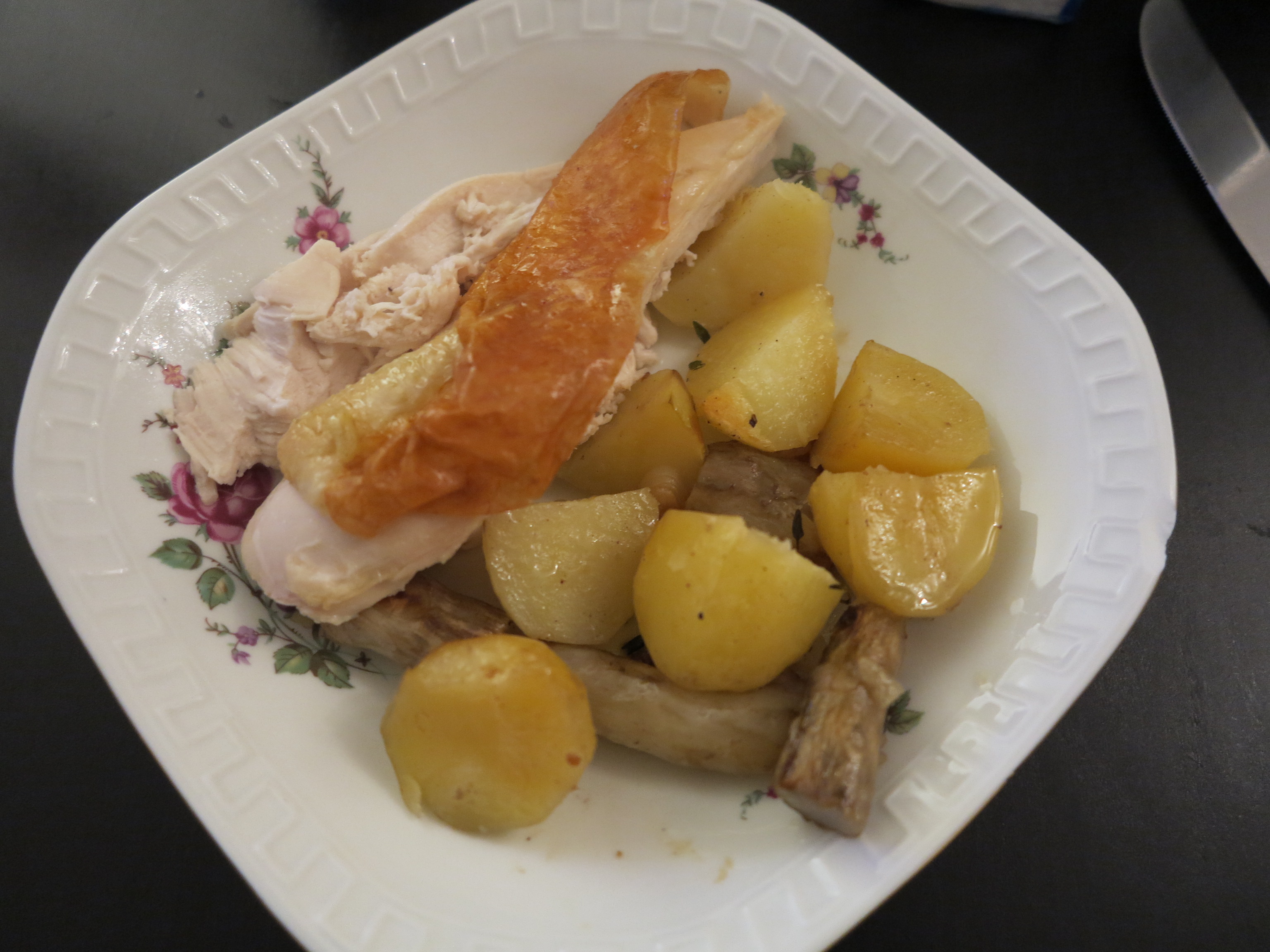 I”m guessing the yellower chunks are the Jerusalem artichokes. One they are cut, they blend very well with the potatoes. Sounds like a terrific combination with the lazy chicken’s drippings. It’s always fun finding a new vegetable to love and look forward to.