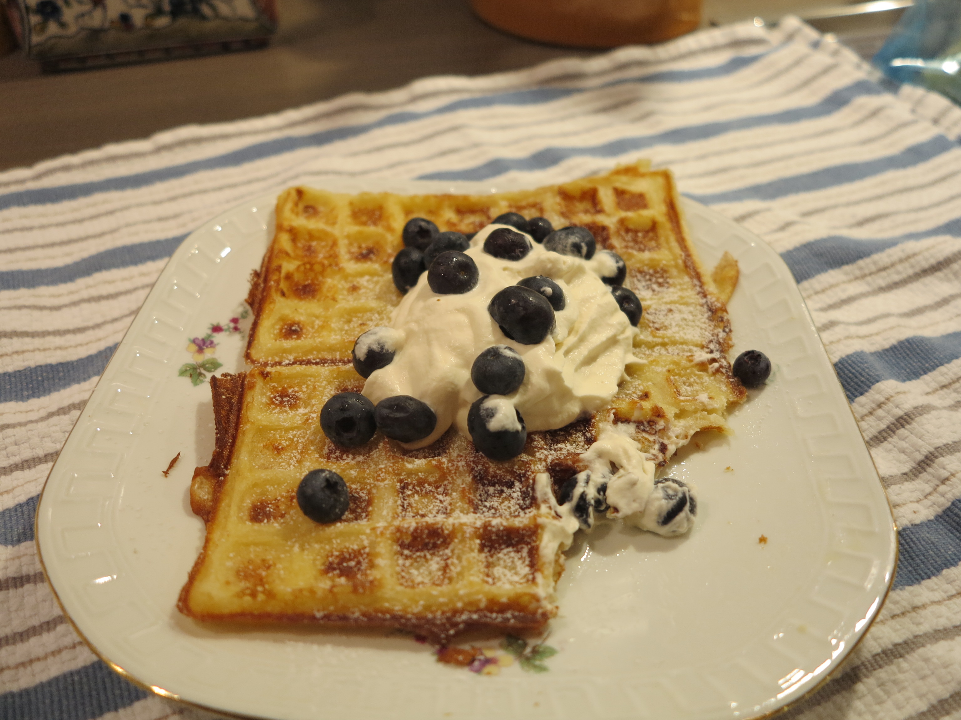 To top it all off my husband forgot his years of training and, when I turned my back to look for the camera, started eating the waffle I had just set up for pictures. So, as you can see, with a corner missing…