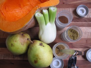 But on with the recipe. I have made many a pumpkin and/or squash soups in my lifetime, but this was the first time that pear and fennel were thrown into the mix. And while I can’t say that the taste of either was particularly pronounced in the end product, both added a subtle little complexity of flavor which I really enjoyed.