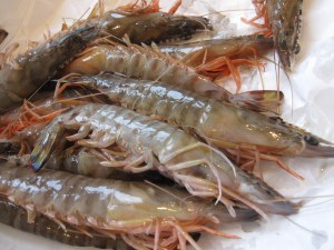 So off I set to Frankfurt’s large indoor market, and straight to my favorite fish stall, were the fish is always incredibly fresh and the fish mongers are so nice and helpful. Upon hearing that I wanted shrimp, the fish guy excitedly told me that they currently had some very fresh ones in stock and proceeded to start piling them on the scale for me. It was at this point, specifically when one of the shrimp jumped out of the scale in an escape attempt, that I realized exactly how fresh these shrimp were… they were still alive and quite literally kicking! The fish guy laughed, reminded me to keep a cover on the pan when I cooked them, and handed me over a bag of the freshest shrimp I have ever purchased. Eeek!